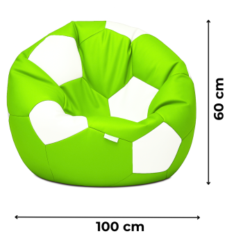 Mala bijelo-ljubičasta torbica za nogometnu loptu zadovoljit će ne samo male već i velike nogometaše. Izrađena je od eko kože koja se lako čisti, a istovremeno je ekološki prihvatljiva. Volumen vreće je 95 l, punjenje je polistiren granulat koji svojom prilagodljivošću pridonosi zdravom sjedenju.