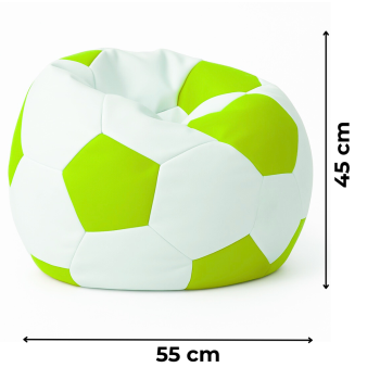Mala vreća za sjedenje s nogometnom loptom boje bijele limete prikladna je za svaku dječju sobu ili igraonicu. U svježoj je bijeloj boji limete. Torba je zapremine 95 l, njeno polistirensko punjenje pridonosi udobnom i zdravom sjedenju. Površina torbe izrađena je od eko kože koja se lako čisti i ekološki je prihvatljiva.